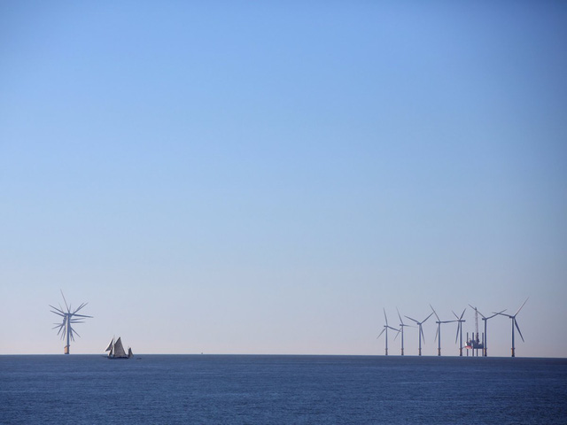 Trang trại điện gió này, nằm ở thị trấn Clacton-on-Sea của Anh, trông như thể nổi thẳng từ mặt nước vậy.