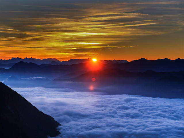 Đứng trên ngọn núi Hundskopf, nhiếp ảnh gia này đã chộp lấy khoảnh khắc màn sương mù che phủ thung lũng Inntal trong khi mặt trời mọc lên trên ngôi làng ở Gnadenwald, Áo.