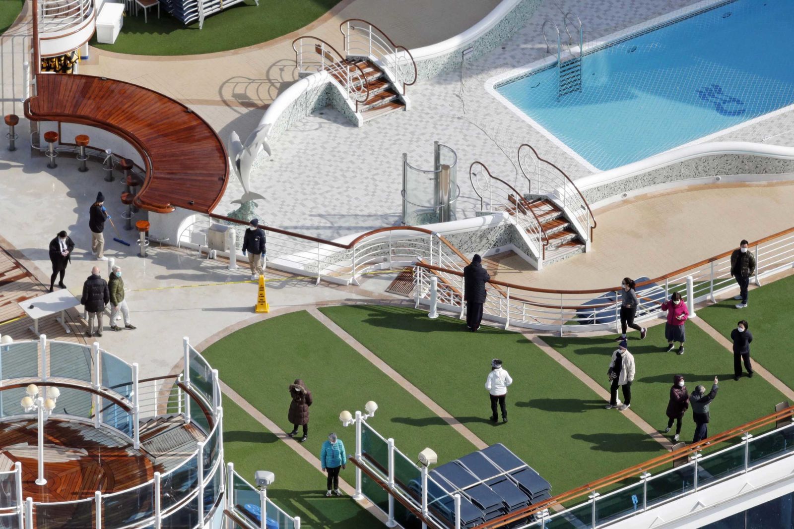 Hành khách trên boong tàu Diamond Princess, cập cảng Yokohama (Nhật Bản) vào ngày 7/2.