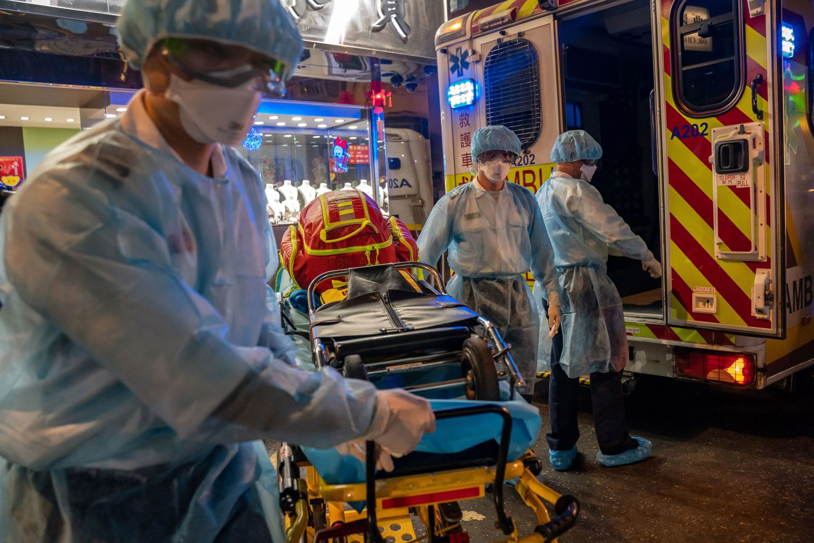 Nhân viên y tế đưa bệnh nhân ra khỏi xe cấp cứu ở Hong Kong hôm 23/2.