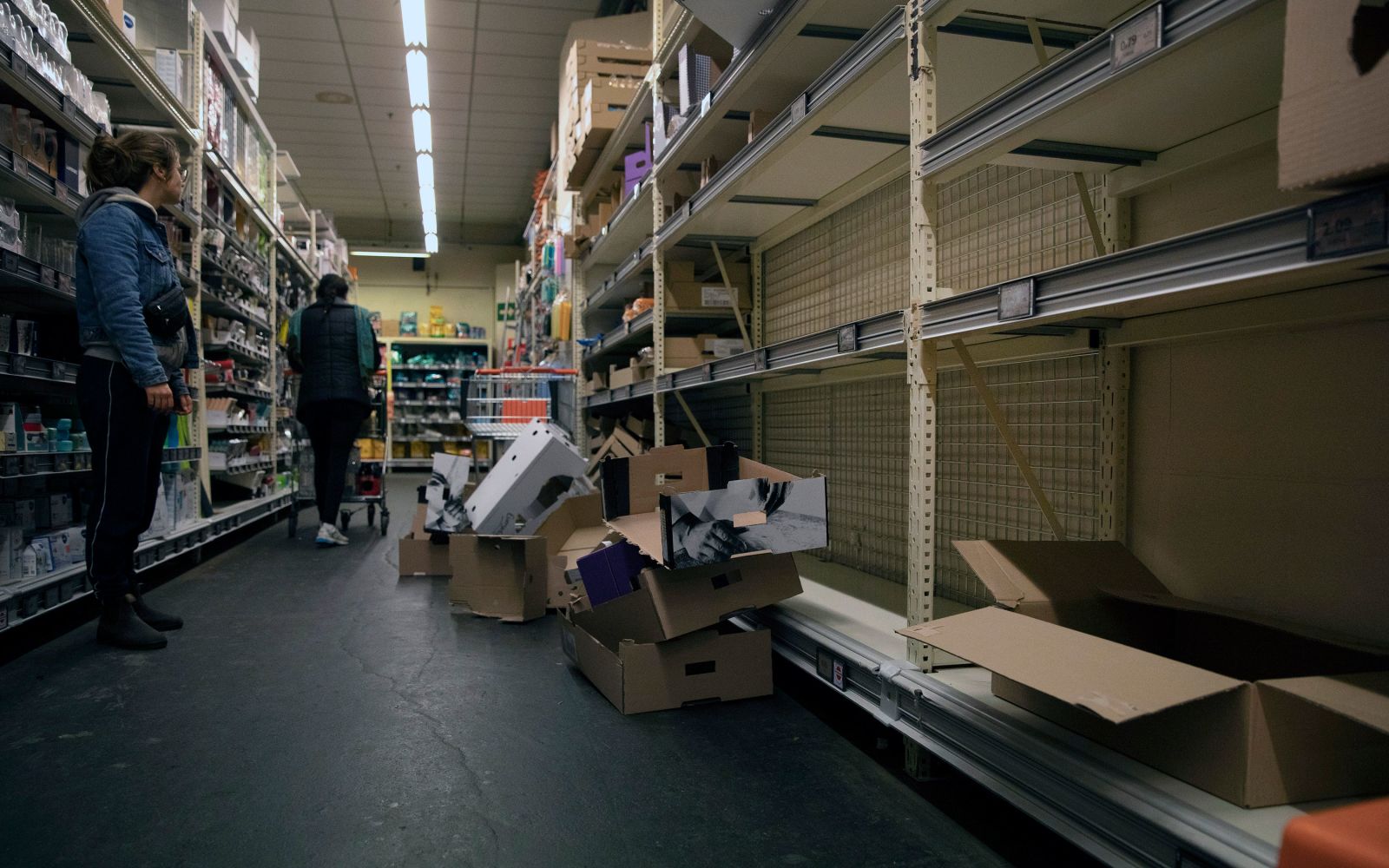 Một người phụ nữ đứng trước kệ hàng trống rỗng ở Antwerp, Bỉ ngày 13/3.