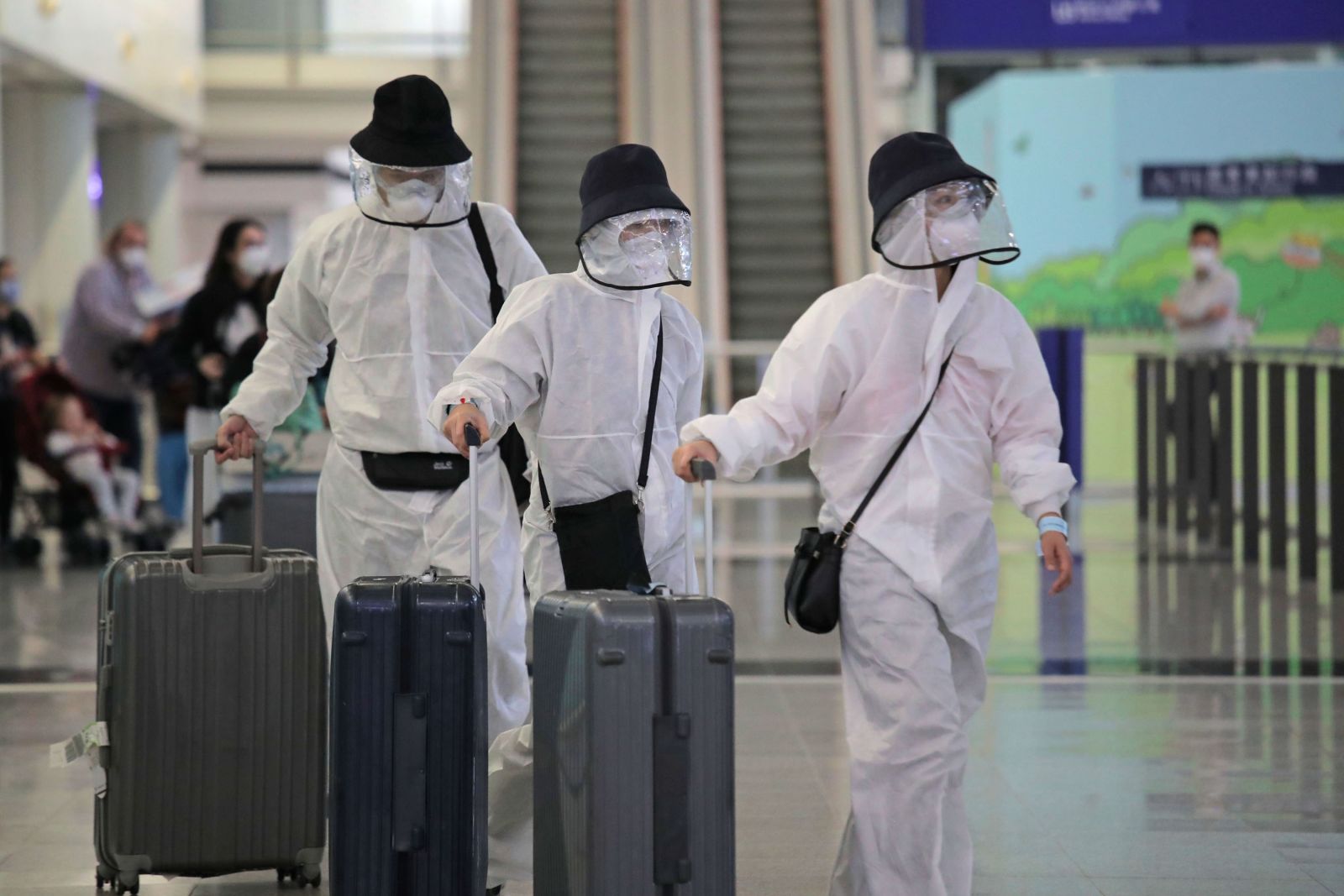 Hành khách đến sân bay quốc tế Hong Kong vào ngày 23/3.