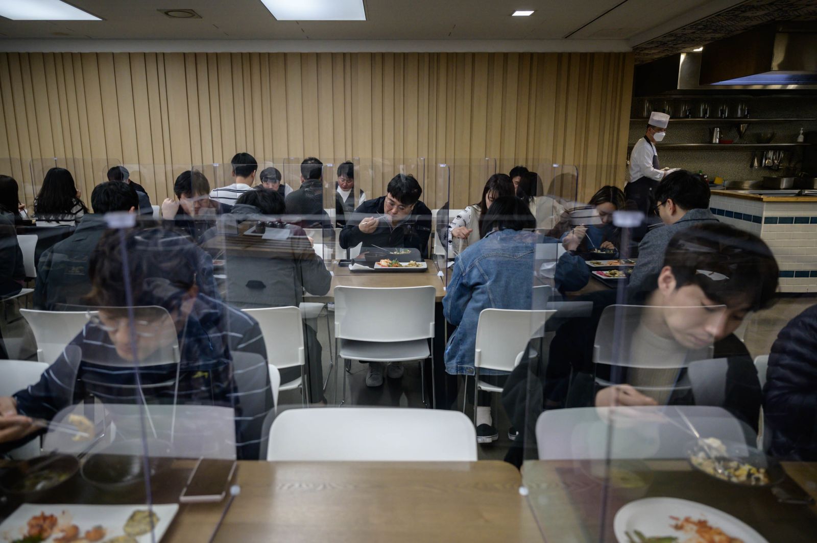 Nhân viên công ty thẻ tín dụng Hyundai Card tại một tiệm cơm văn phòng ở Seoul, Hàn Quốc ngày 9/4.