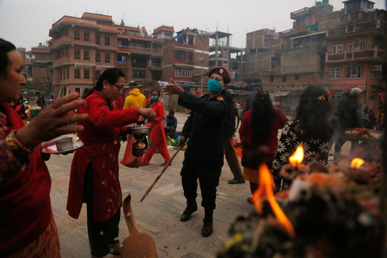 Cảnh sát yêu cầu người dân về nhà, tránh tụ tập dịp lễ Bisket Jatra ở Bhaktapur, Nepal.