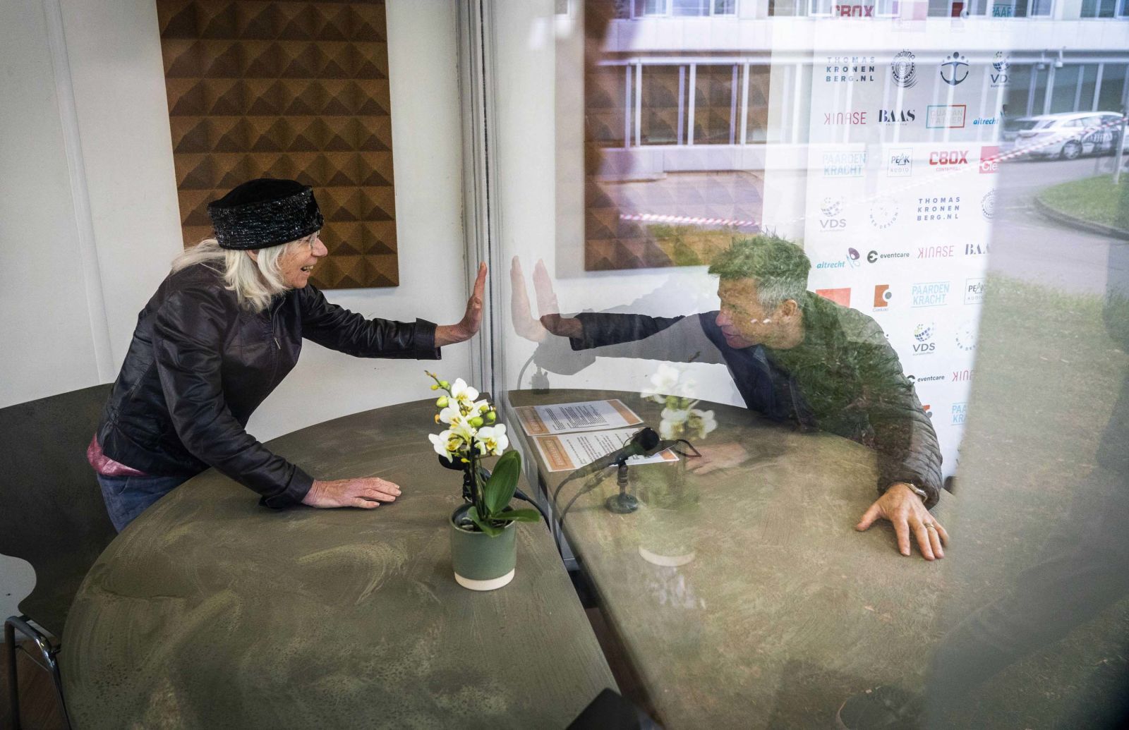 Người phụ nữ đến thăm con trai tại khu cách ly trong một trung tâm chăm sóc ở Utrecht, Hà Lan hôm 14/4.