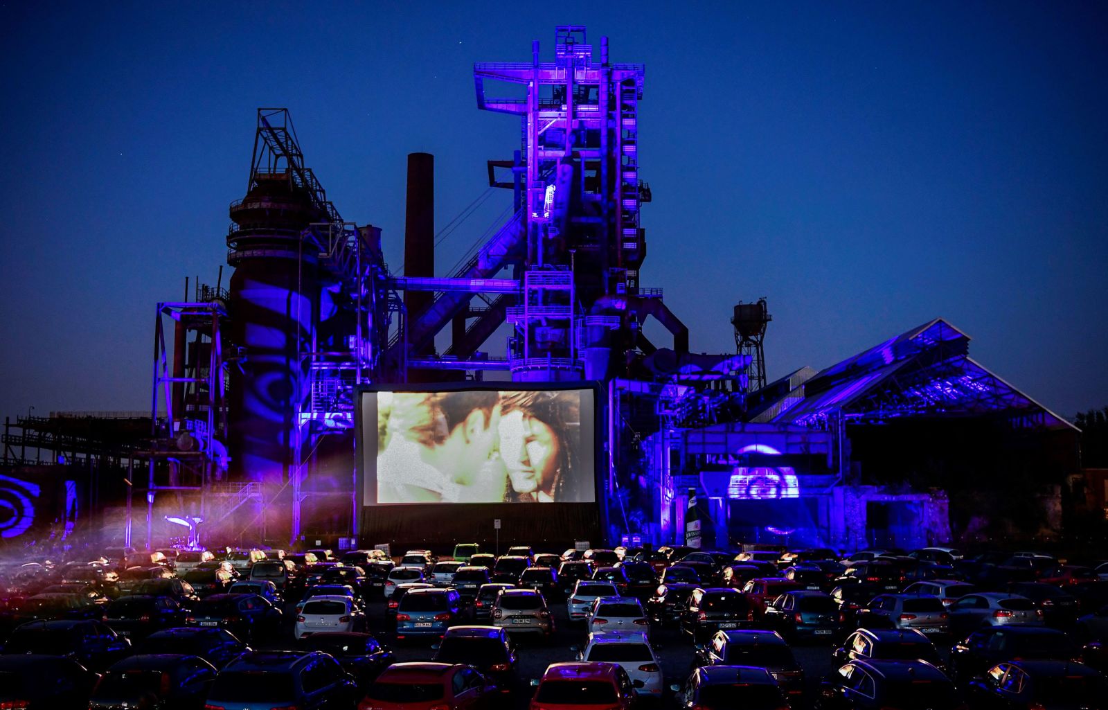 Hàng loạt ô tô tại điểm chiếu phim “cách ly” ở Dortmund, Đức ngày 17/4.