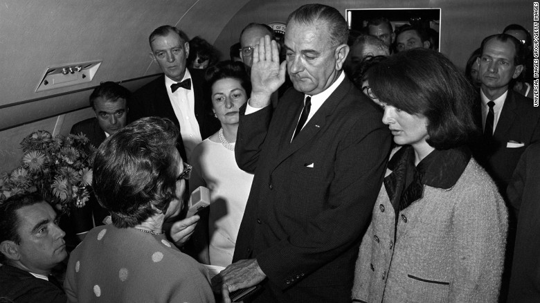 Vài giờ sau vụ ám sát, Phó Tổng thống Lyndon Johnson đã tuyên thệ nhậm chức Tổng thống Mỹ trên chiếc Air Force One, cùng với bà Jacqueline Kennedy. Một bức ảnh đã ghi lại toàn cảnh diễn ra lúc đó. Thẩm phán liên bang Sarah Hughes đã chứng giám lời tuyên thệ, trở thành người phụ nữ đầu tiên của Mỹ làm điều này.
