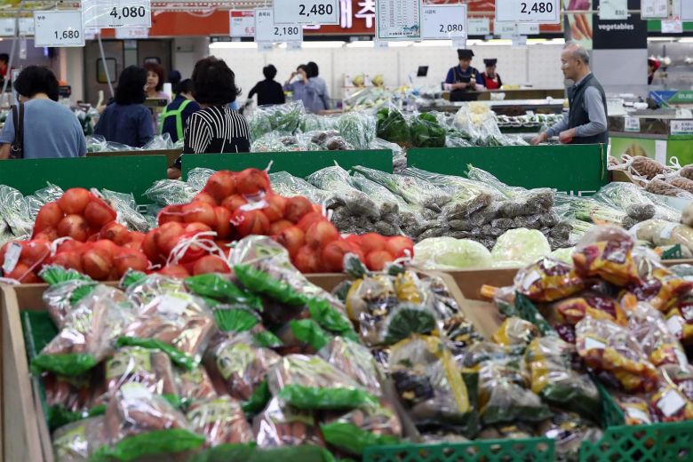Người dân đi siêu thị mua sắm trước dịp lễ Chuseok. Ảnh: Straits Times