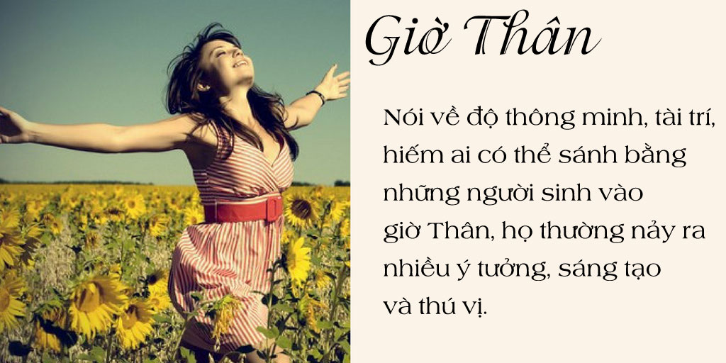 Những người sinh vào giờ Thân thường khá dễ tính, hòa đồng, khéo léo và vô cùng lanh lợi. Nói về độ thông minh, tài trí, hiếm ai có thể sánh bằng những người sinh giờ này. Tài năng của họ không thiếu, họ thường nảy ra nhiều ý kiến sáng tạo và thú vị.