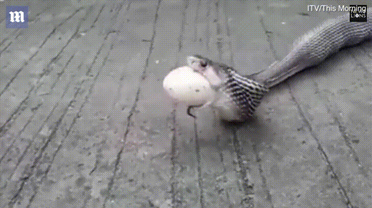 Cách đây không lâu, một con rắn hổ mang đã lẻn vào một trang trại nuôi gà ở Chandrapur, Maharashtra, Ấn Độ, giết chết gà mái và nuốt trọn ổ trứng gà vào bụng. Do quá tham ăn nên con rắn bị mắc nghẹn ngay sau đó, khiến loài bò sát không chân lăn lộn dưới đất.