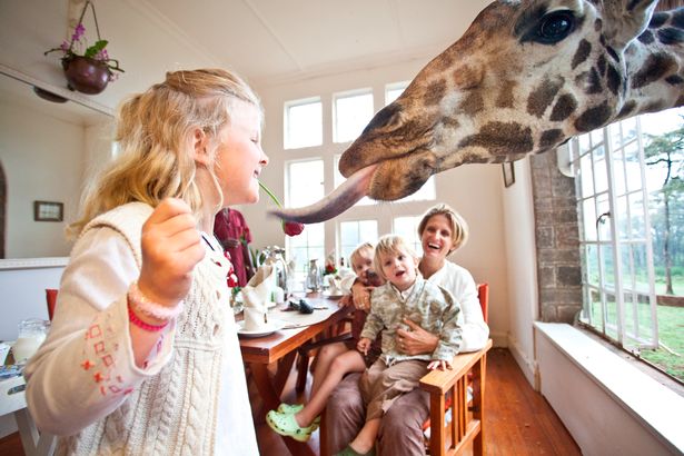 Tại Giraffe Manor (Trang Viên Hươu Cao Cổ) tại Nairobi, Kenya, những thực khách hẳn sẽ rất vui khi được tới gần những chú hươu cao cổ sinh sống tại khu vực quanh nhà hàng.