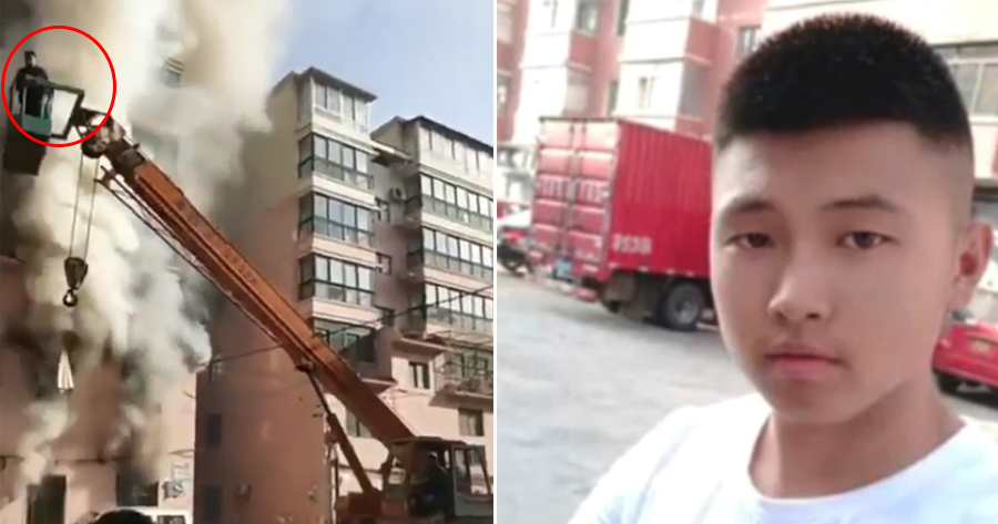 Tại thời điểm đó, trong khi đang điều khiển chiếc xe cần cẩu tại một công trường xây dựng tại thành phố Phủ Thuận (tỉnh Liêu Ninh, Trung Quốc), anh Lam Tuấn Trạch (19 tuổi) phát hiện thấy ngọn lửa bốc cháy tại một chung cư gần đó.