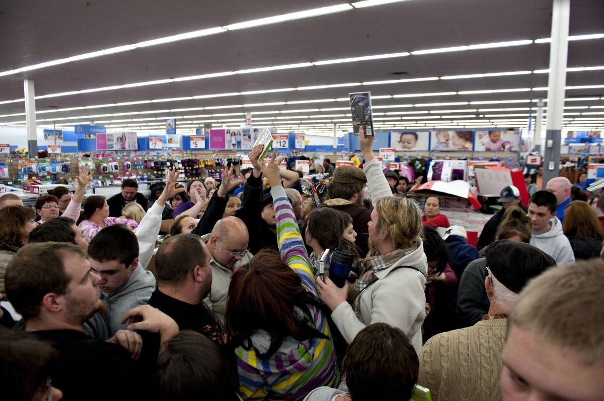 Theo lời kể của một nhân viên siêu thị Walmart, ông từng phải can ngăn khá nhiều vụ ẩu đả để giành hàng hóa, điển hình là vụ hai người đàn ông đánh nhau tới đổ máu, rụng răng để tranh giành xe đạp. Sau khi đánh nhau chán chê, một người đàn ông giật lấy chiếc xe đạp, ngồi lên và lái thẳng ra đường trước sự ngỡ ngàng của mọi người. Và đương nhiên, ông ta đã không trả tiền cho chiếc xe đó mà mất hút giữa dòng người đang chen chúc mua sắm.