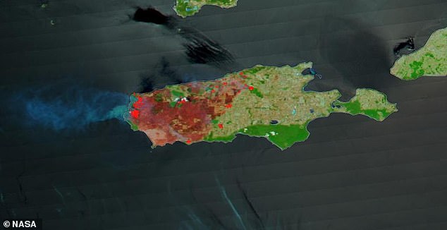 Đảo Kangaroo đỏ rực vì cháy rừng. Ảnh: NASA