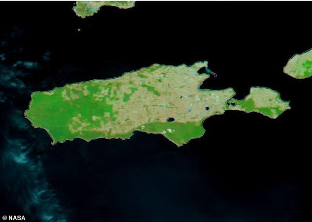 Cảnh quan tươi xanh ở đảo Kangaroo trước khi cháy rừng nghiêm trọng. Ảnh: NASA