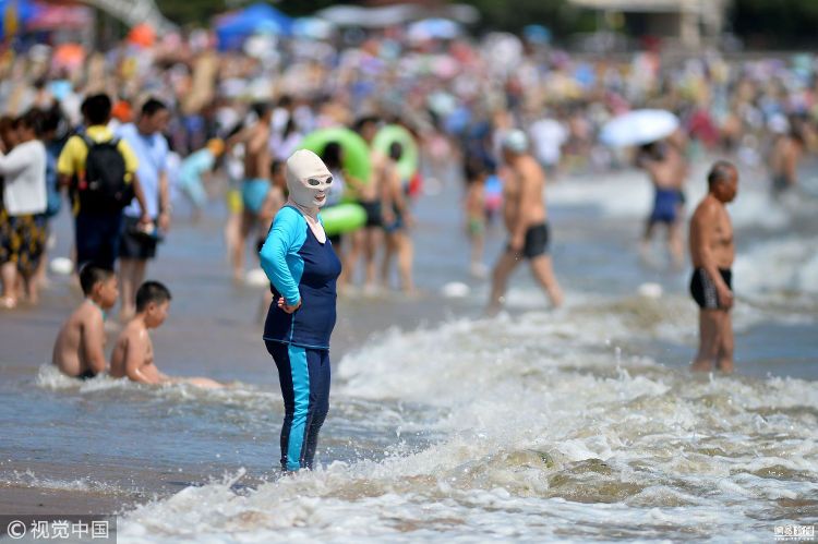 Trong mùa hè nắng nóng ngột ngạt, những bãi biển luôn là địa điểm yêu thích cho tất cả mọi người. Tuy nhiên, thay vì diện những bộ bikini 2 mảnh, khoe những đường cong trên cơ thể thì bãi biển Thanh Đảo, tỉnh Sơn Đông, Trung Quốc lại ngập tràn… ninja áo tắm.