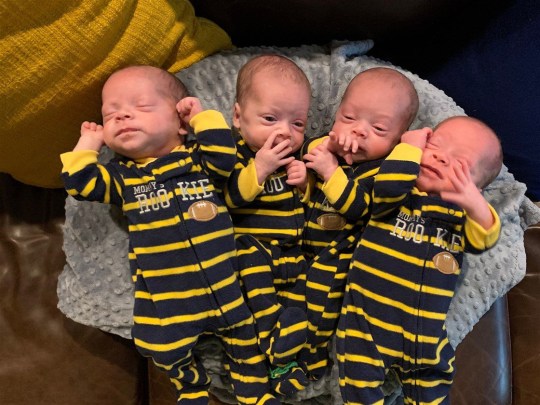 Jenny chuyển dạ vào tuần thứ 28,5 của thai kỳ, đúng lúc nước Mỹ áp dụng lệnh phong tỏa. Cả 4 cậu nhóc đáng yêu đã nhanh chóng ra đời sau khi vào phòng mổ được 3 phút. Harrison là anh cả, tiếp đến là Hardy, Henry, cuối cùng là Hudson, tất cả đều chỉ nặng trên dưới 1 kg.