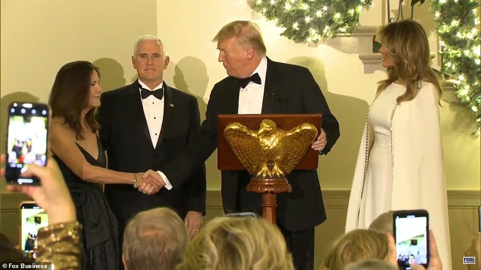 Ông Trump bắt tay bà Karen, phu nhân Phó Tổng thống Mike Pence.