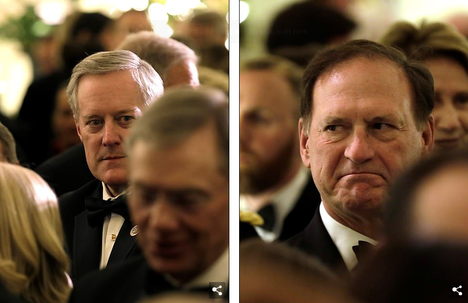 Nghị sĩ Mark Meadows (trái) và Phó Thẩm phán Tòa án Tối cao Hoa Kỳ Samuel Alito (phải) cũng có mặt trong sự kiện.