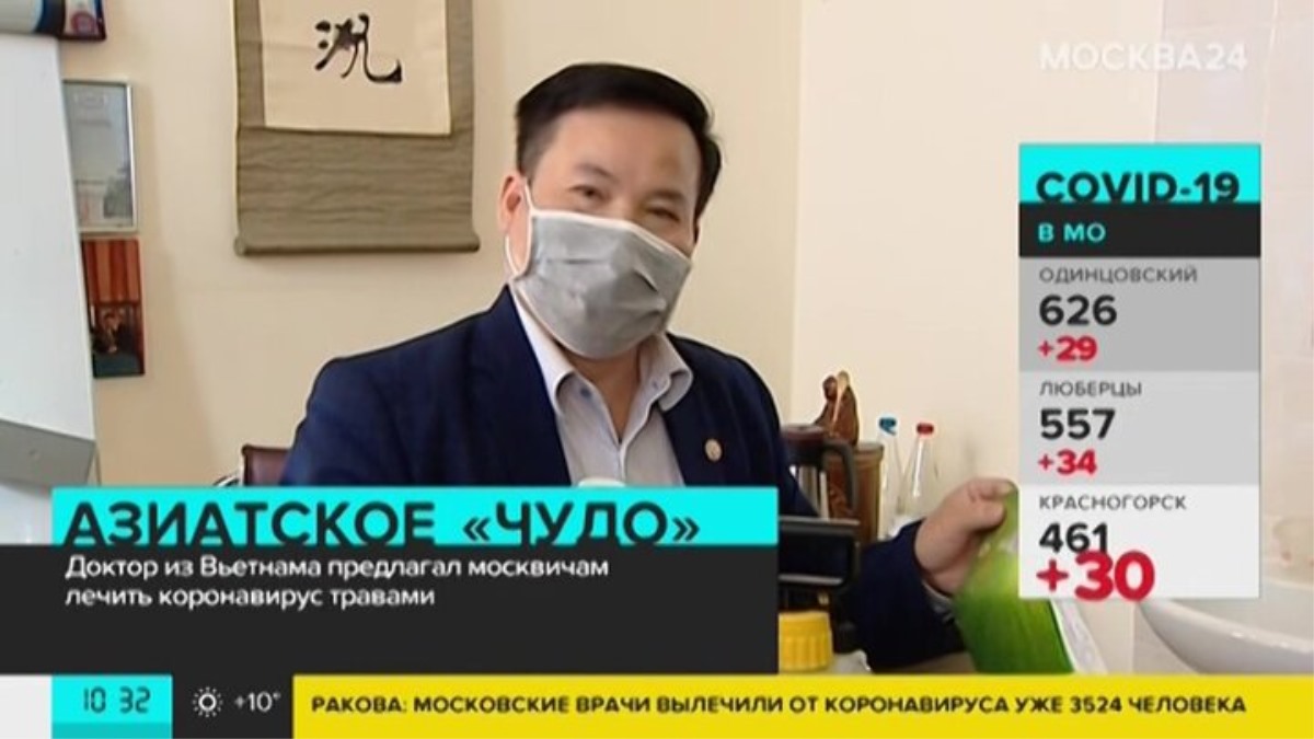 Kênh truyền hình Moscow 24 đưa tin, cơ quan chức năng Nga mới đây đã phát hiện một phòng khám tự quảng cáo rằng có thể chữa được COVID-19 trong đợt kiểm tra đột xuất các cơ sở y tế thuộc khu vực Moscow. Bên cạnh đó, cơ quan chức năng cũng bắt giữ một người đàn ông gốc việt tự xưng là bác sĩ ngay tại phòng khám.