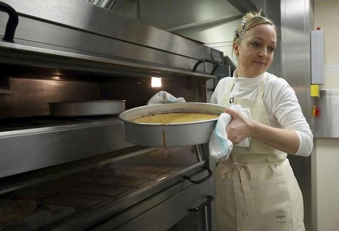 Thợ lấy cốt bánh khỏi lò nướng. Thiết kế cuối cùng của chiếc bánh sẽ được công bố vào ngày 19/5, trong hôn lễ của hai người.