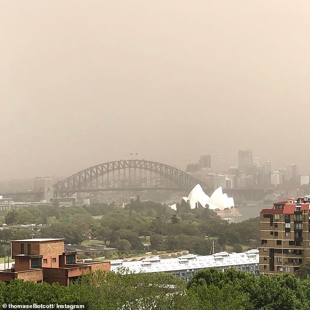 Bụi phủ mù mịt thành phố cảng Sydney. Ảnh: