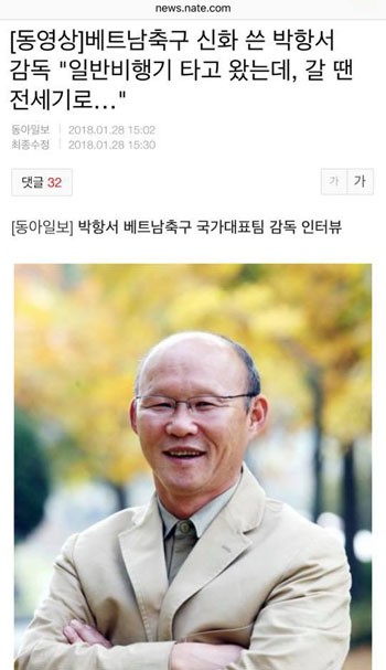 Bài phỏng vấn huấn luyện viên Park Hang-seo trên báo chí Hàn Quốc. Ảnh chụp màn hình.