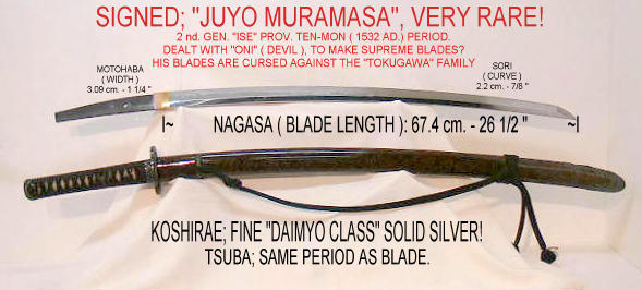 Ở thời Mạc Phủ Tokugawa Leyasu, thanh kiếm Muramasa và những bản sao của nó bị săn lùng ráo riết. Người cha và ông nội của Mạc Phủ được cho là bị giết bởi thanh kiếm Muramasa. Bản thân Tokugawa Leyasu từng bị trọng thương bởi thanh kiếm này trong khi thị sát đơn vị quân đội.