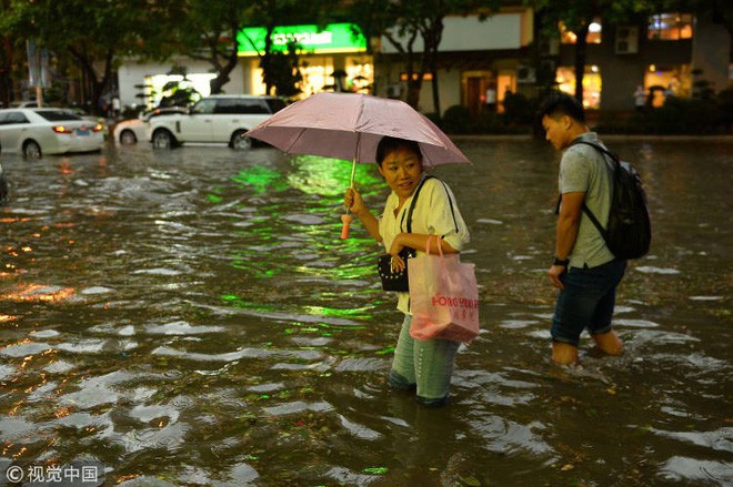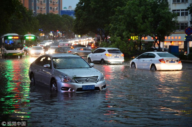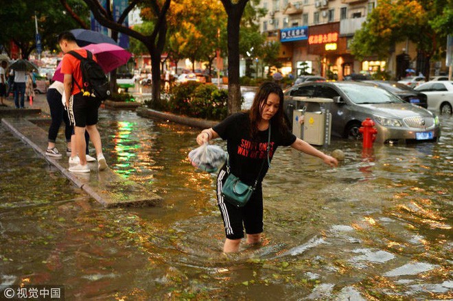 Khu vực ven biển của Thanh Đảo, Trung Quốc bị ảnh hưởng bởi một cơn bão dữ dội, khiến nhiều cây to bị quật ngã, nước ngập mênh mông