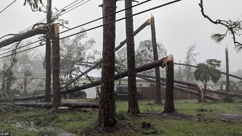 Cây đổ hàng loạt ở Port St. Joe. Nhiều sân bay ở Florida buộc phải đóng cửa cùng hơn 453 chuyến bay đã bị hủy do bão Michael. Ảnh: AP