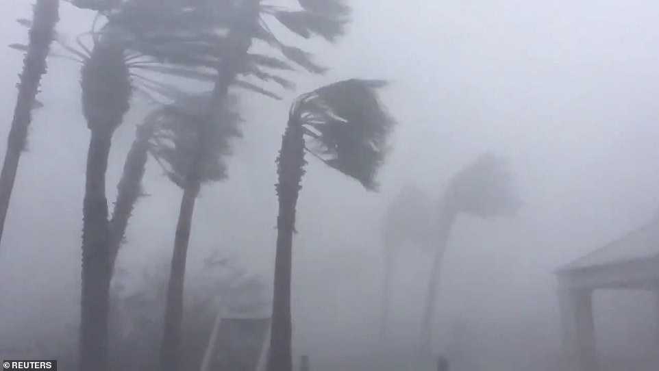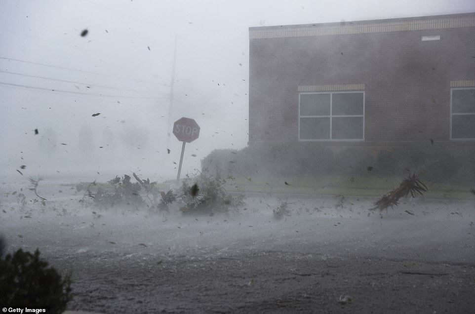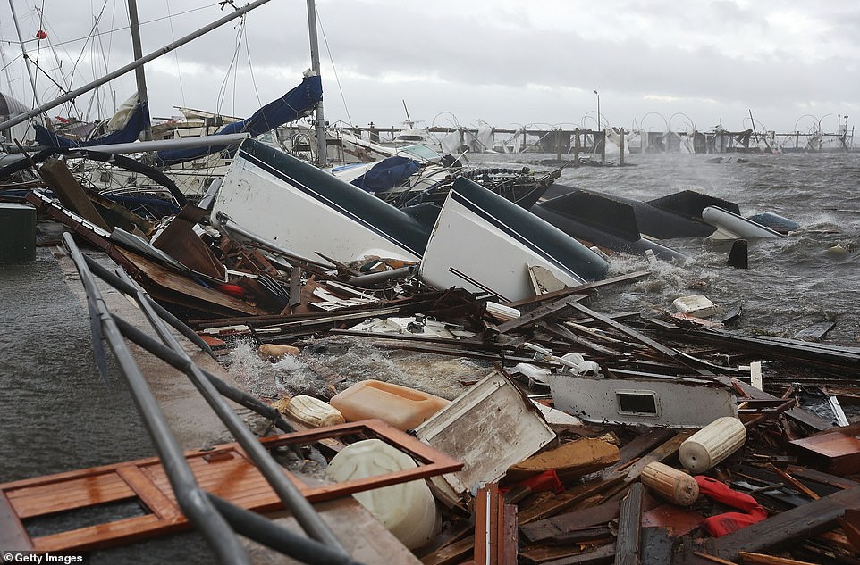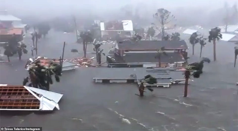 Mắt bão lớn Michael tấn công Mexico Beach, bang Florida vào chiều 10/10 và hoàn lưu bão tới bờ biển giữa Panama City Beach và đảo St. Vincent sớm vài phút so với dự kiến. Michael sau đó quần thảo đất liền khiến các khu phố ngập lụt ngay sau khi di chuyển tới gần Mexico Beach với sức gió của một cơn bão mạnh cấp 4 trong thang đo bão của Mỹ. Đây là cơn bão mạnh nhất đổ bộ lục địa Mỹ kể từ sau cơn bão Andrew năm 1992. Ảnh: Daily Mail