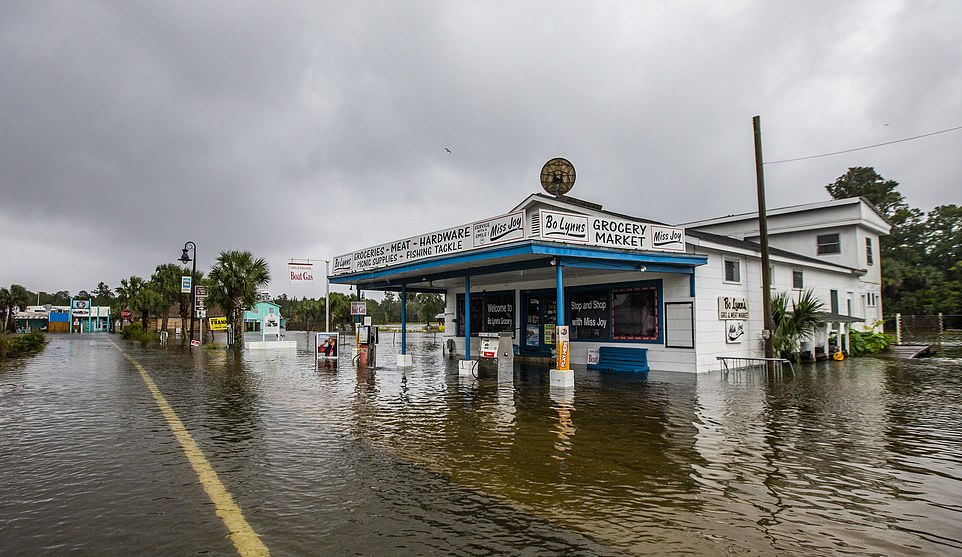 Nước từ các sông Wakulla và Saint Marks dâng cao, làm ngập nhiều khu vực tại thị trấn Saint Mark. Sau khi đổ bộ Florida, bão Michael sẽ quét qua toàn bộ miền đông nam nước Mỹ và hướng ra Đại Tây Dương. Ảnh: Daily Mail