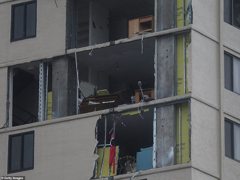 Gió thổi bay cửa sổ nhiều ngôi nhà và văn phòng, trong đó có tòa nhà ngân hàng First Federal Bank. Ảnh: Getty