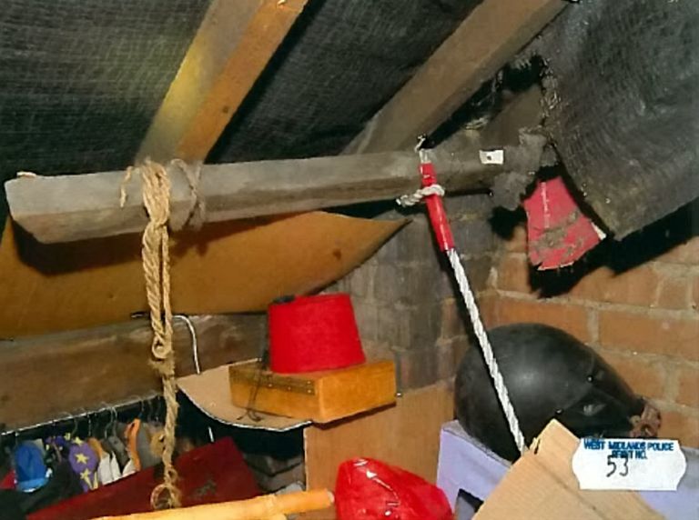 Sau khi khám xét căn nhà mà gã bệnh hoạn đang ở, cảnh sát tìm thấy nhiều dụng cụ tình dục như đồ chơi tình dục, băng dính đen, núm vú giả, một khẩu súng và những sợi dây thừng và dây xích treo lơ lửng trên các thanh xà ngang của tầng áp mái.