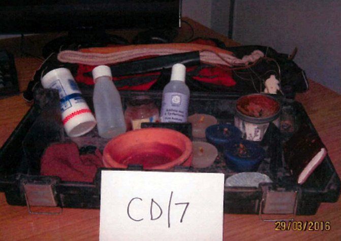 Trong phòng cảnh sát tìm thấy một hộp đồ đựng đầy roi, nến và nước thơm.