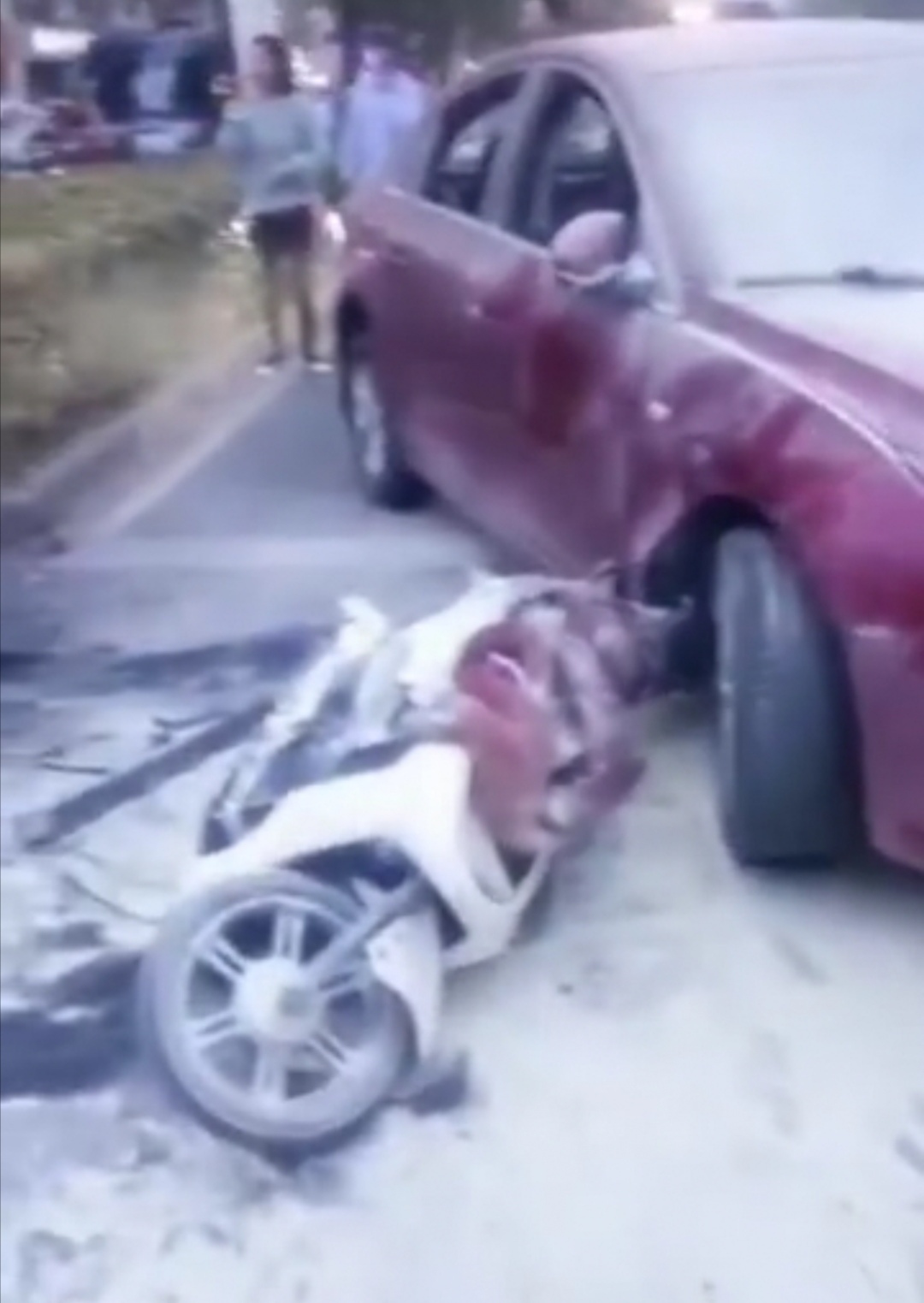 Vào chiều tối 19/4, một vụ tai nạn xe ô tô đã xảy ra ở Thái Châu, tỉnh Giang Tô, Trung Quốc. Theo báo cáo, một chiếc xe màu đỏ và một chiếc xe màu trắng cùng va chạm với nhau và vô tình khiến chiếc xe máy của 2 bố con anh Châu, người cũng đang lưu thông trên đường vào thời điểm đó, bị kẹp giữa khoảng không của hai phương tiện.