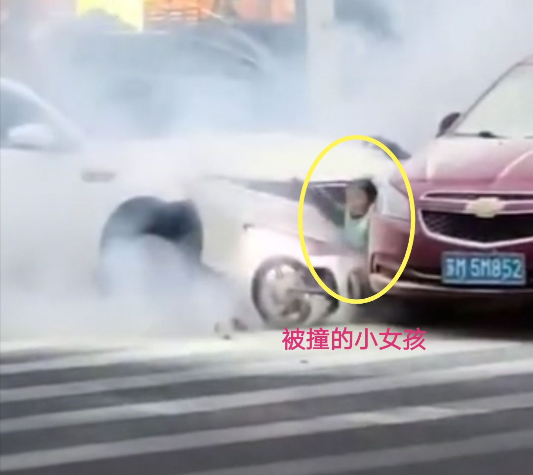 Mọi người chưa kịp đến giải cứu thì chiếc xe trắng lại bất ngờ đạp chân ga, tông vào đứa bé thêm lần nữa. Nếu như không có chiếc xe màu đỏ chắn ở đó, chắc hẳn chiếc xe màu trắng kia đã nghiền nát bé gái rồi bỏ chạy.