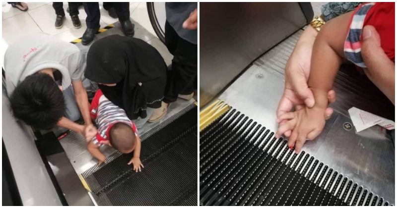 Mới đây, một bài đăng trên Twitter của tài khoản 999 Malaysia (@ 999Malaysia) đang lan truyền trên mạng xã hội. Hình ảnh cho thấy một bé trai khoảng 2-3 tuổi bị kẹt ngón tay dưới bậc cuối cùng của thang cuốn. Sự việc xảy ra ở trung tâm mua sắm tại Bintulu, bang Sarawak, Malaysia.