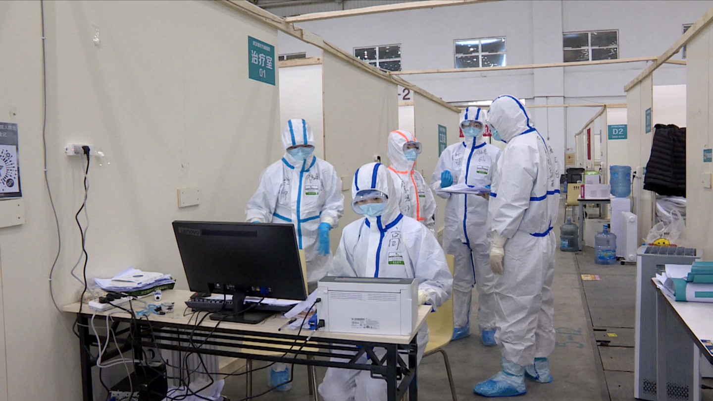 Đội ngũ nhân viên y tế tại bệnh viện dã chiến ở Vũ Hán.