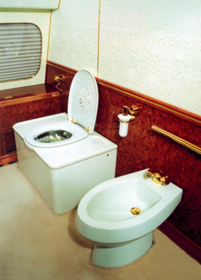 Một số chi tiết ở bồn cầu cũng được mạ vàng. Business Insider ước tính chi phí để chế tạo mỗi chiếc Il-96 dát vàng dành cho Tổng thống Putin khoảng 3,9 tỷ rupees (khoảng 670 triệu USD). Nếu tính thêm các hệ thống đảm bảo an ninh, chi phí máy bay có thể cao hơn nhiều. Ảnh: Business Insider.