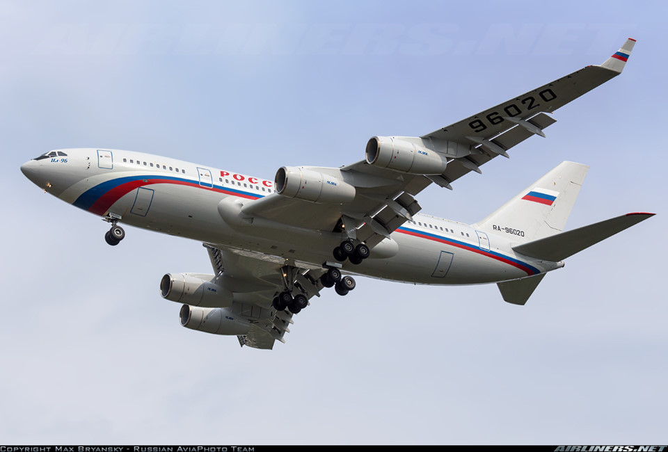 Tổng thống Putin sở hữu 2 chiếc Il-96-300PUM1 giống hệt nhau để đánh lừa khủng bố. Máy bay của Tổng thống Putin được điều hành bởi Hãng hàng không nhà nước Rossiya Airlines. Người ta không rõ Nga có sử dụng mã kiểm soát không lưu riêng dành cho máy bay chở tổng thống như Air Force One của Mỹ hay không. Ảnh: Airliners.