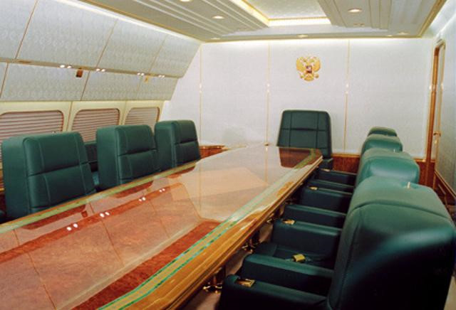 Bên trong chuyên cơ của Tổng thống Putin được thiết kế rất sang trọng với một phòng họp lớn dành cho tổng thống và các quan chức cấp cao. Ảnh: Business Insider.