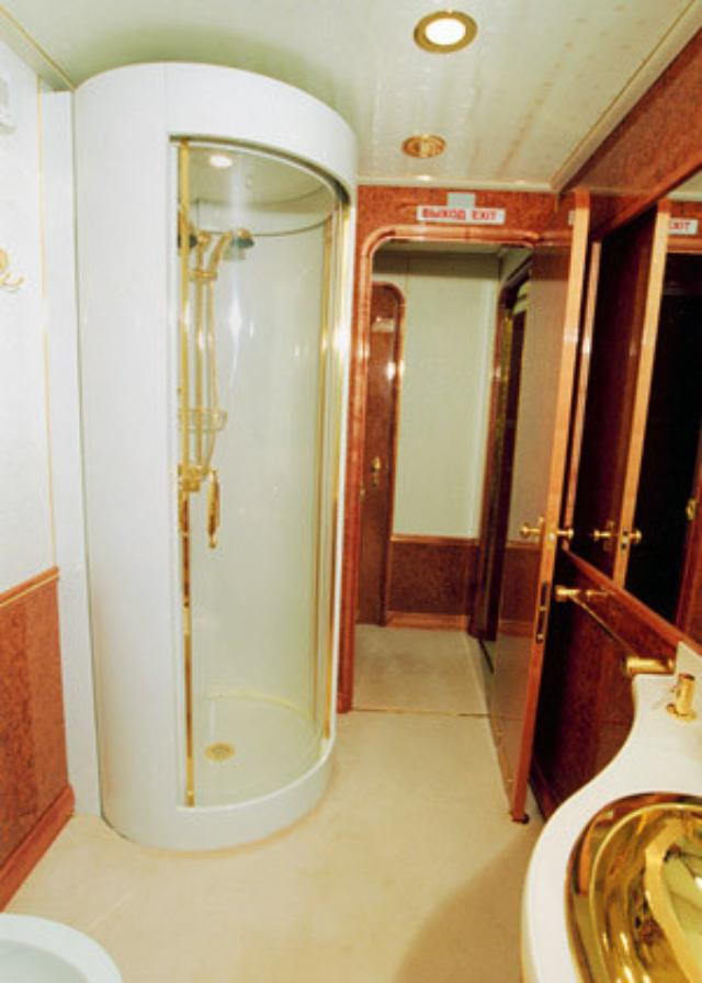 Bên trong máy bay có phòng tắm với vòi sen và chậu rửa mặt được mạ vàng. Nội thất chiếc Il-96 được thiết kế như một tác phẩm nghệ thuật, tuy vậy máy bay vẫn đảm bảo những tiêu chuẩn an ninh cao nhất dành cho việc đưa đón tổng thống. Ảnh: Business Insider.
