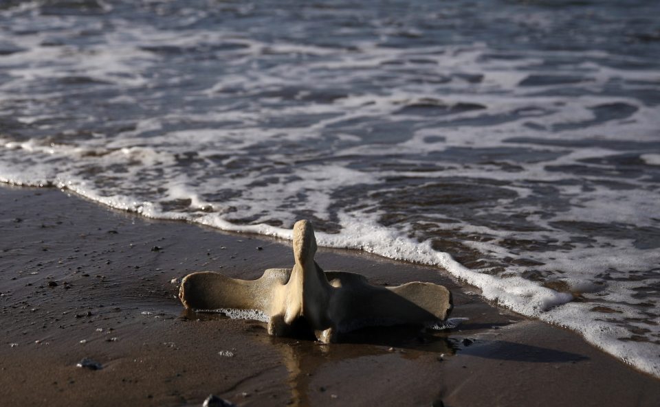 Một đốt sống của cá voi trôi dạt vào bờ.
