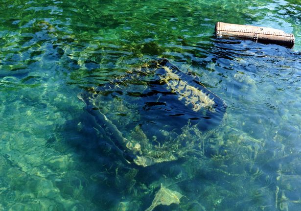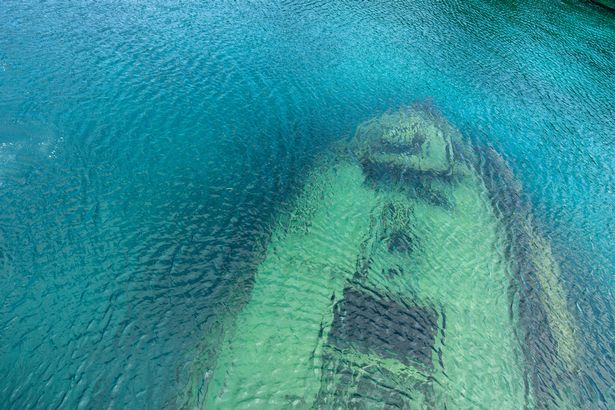 Tàn tích của tàu Sweepstakes dưới đáy hồ.