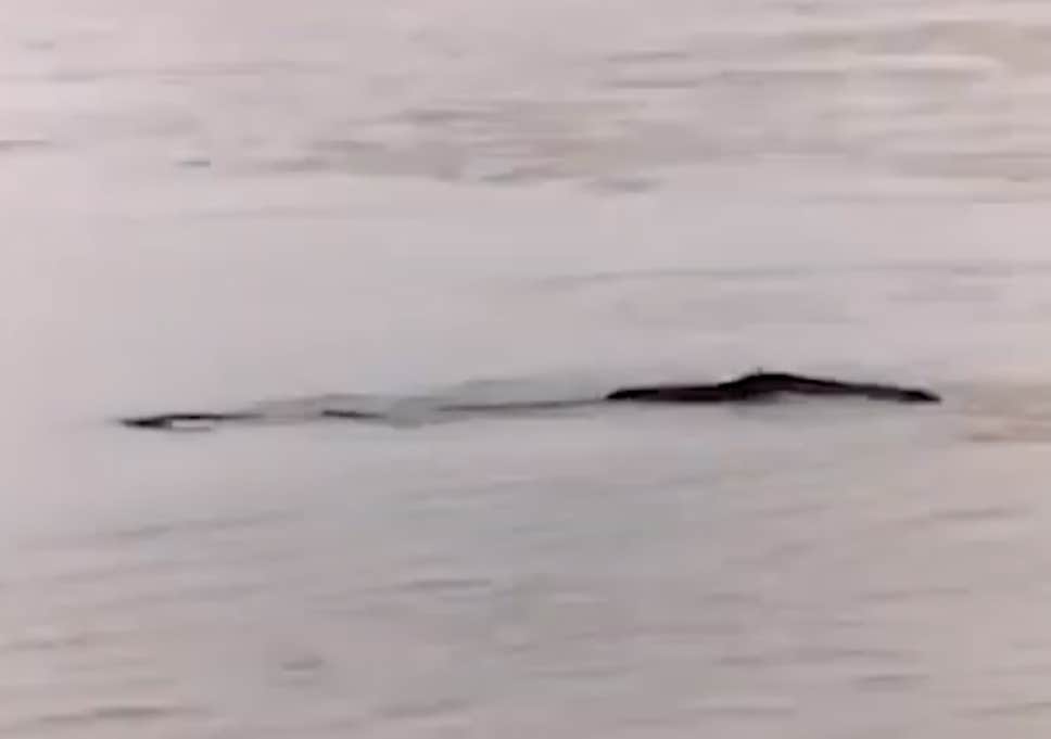 Trong những hình ảnh, người xem có thể thấy được hình dạng không rõ ràng của một sinh vật đen dưới nước nước.
