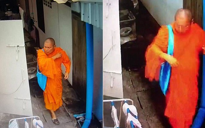 Ngày 5/2, nhà sư Theeraphap Worradilok, 49 tuổi, bị bắt quả tang ăn trộm 6 bộ đồ lót phụ nữ đang phơi trên giá tại một ngõ nhỏ ở tỉnh Suphaburi, Thái Lan. Mặc dù đã chọn ngõ nhỏ để “hoạt động” và ngó nghiêng xung quanh trước khi cho đồ vào túi hành khất, nhưng hành động đáng xấu hổ này đã bị một chiếc camera gần đó quay lại.