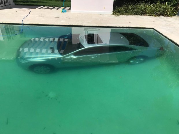 Trở về nhà, Gentile hốt hoảng khi thấy chiếc Mercedes S400 trị giá hơn 100.000 USD đang “đỗ” dưới hồ nước.