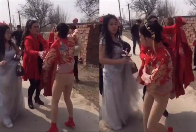 Mới đây, một đám cưới ở thành phố Trường Xuân, tỉnh Cát Lâm cũng rơi vào cảnh tượng tương tự, khi cô dâu bị đám khách nam lột váy cưới ngay giữa đám đông. Theo đoạn clip được chia sẻ trên mạng xã hội, một cô dâu trong trang phục truyền thống đang đứng cùng bạn bè và phù dâu thì bất ngờ bị một đám nam khách tiến tới trêu chọc.