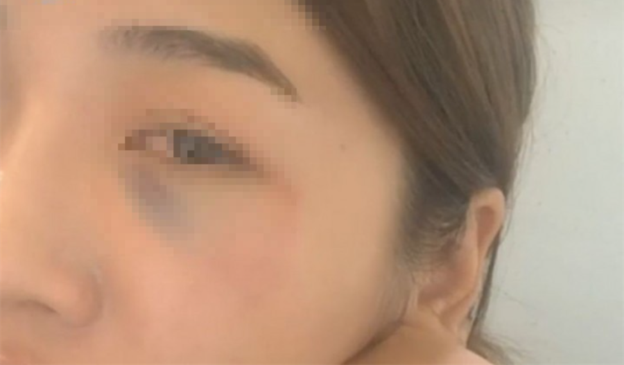 Vết thương dưới mắt của nữ cảnh sát sau khi làm nhiệm vụ.